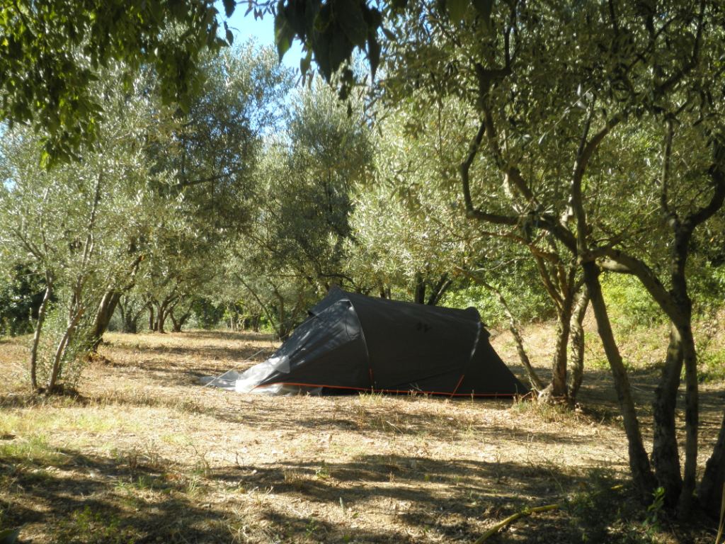 18:30     installation des deux grands dans leur domaine réservé sous les oliviers. Les autres (surtout moi, c’est no way) préféreront le confort et la fraîcheur de la maison. On évitera juste de leur montrer les sauterelles tchernobyliennes, les crottes de sanglier et autres joyeusetés du monde sauvage, histoire de passer des nuits peinardes – bon, juste après avoir crié 254 fois « chuuuuut là-dedans! » de la terrasse (mais qu’est-ce qu’ils ont tant à se dire???) mais c’est un détail infime.