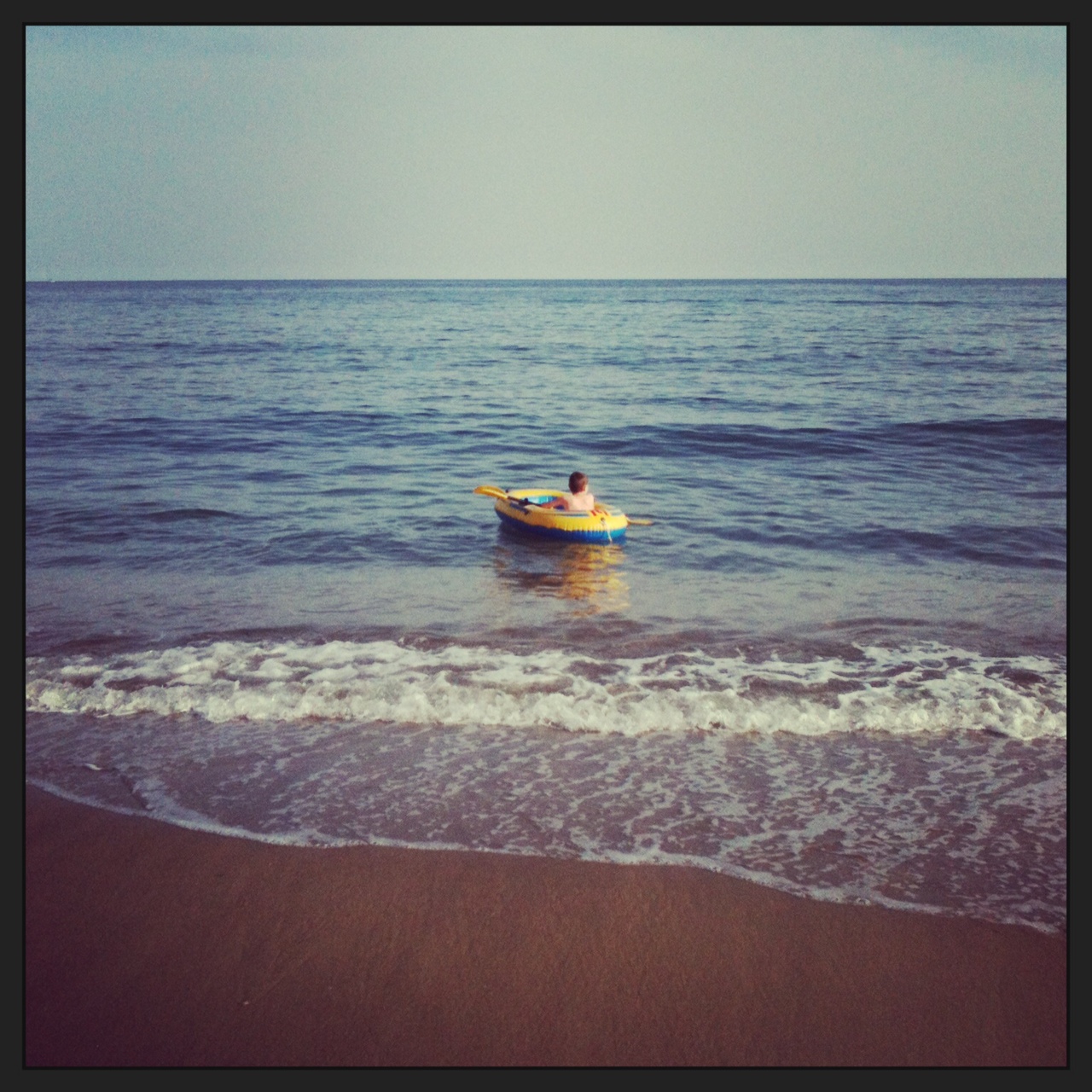 (J’avais attaché Mr Moustache à la bouée, sur une excellente idée de la Collégienne.)