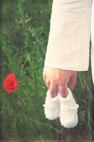 Une maman attend, un bébé dans les bras.